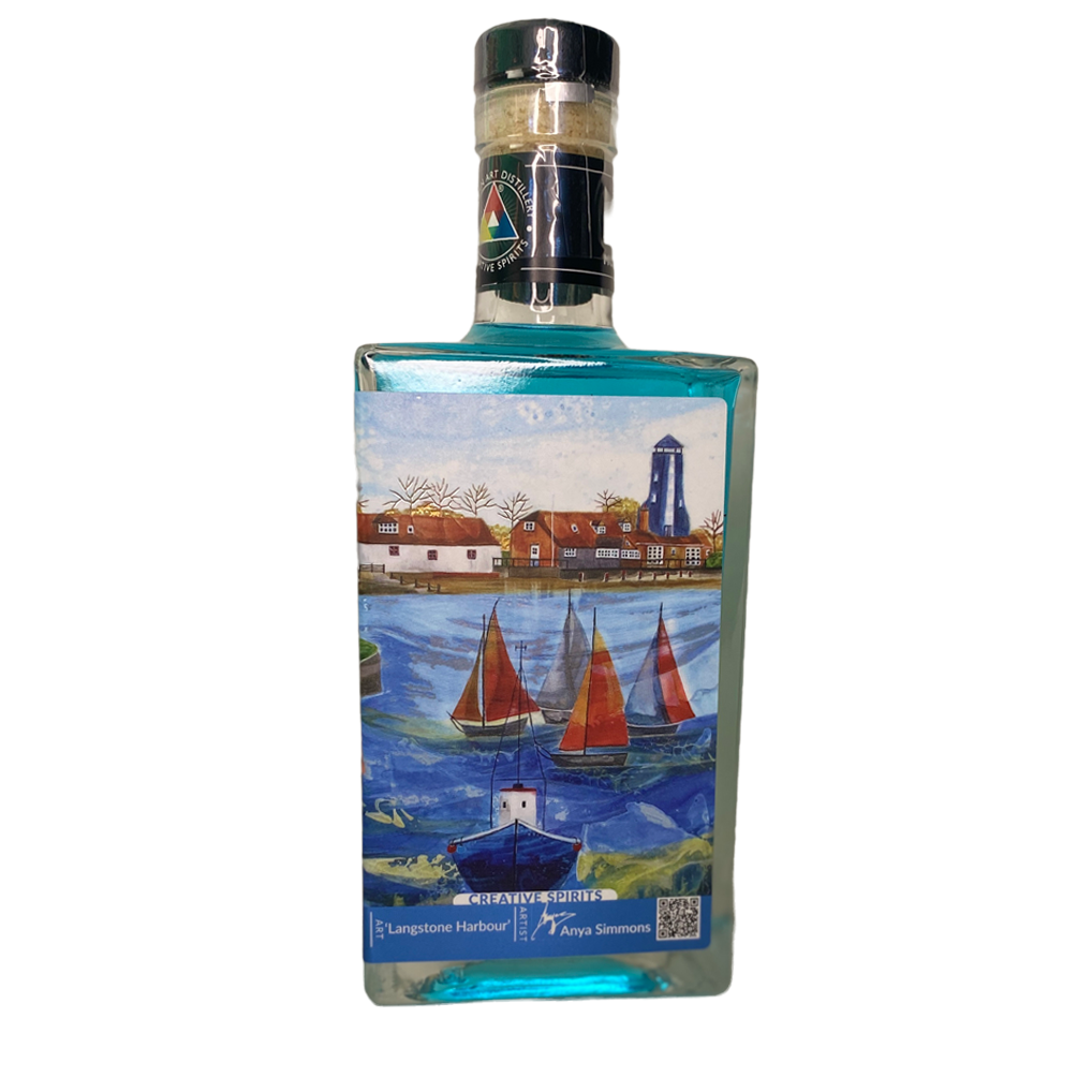 Art on these uniquely numbered collectable bottles is a reproduction of an artwork by Warwick artist Anya Simmons. An idyllic painting called ‘ Langstone Harbour ‘ (depicting western edge of Chichester Harbour).