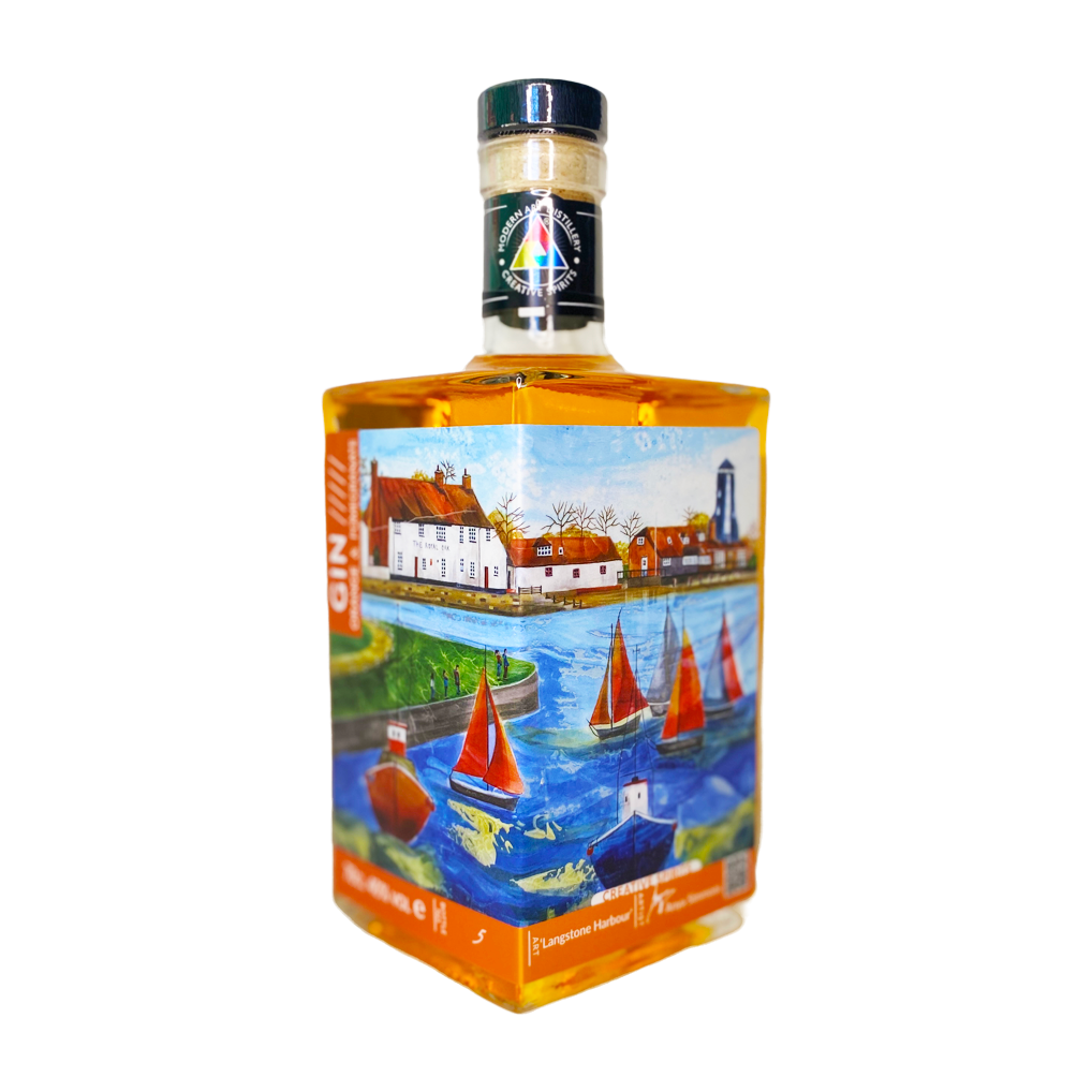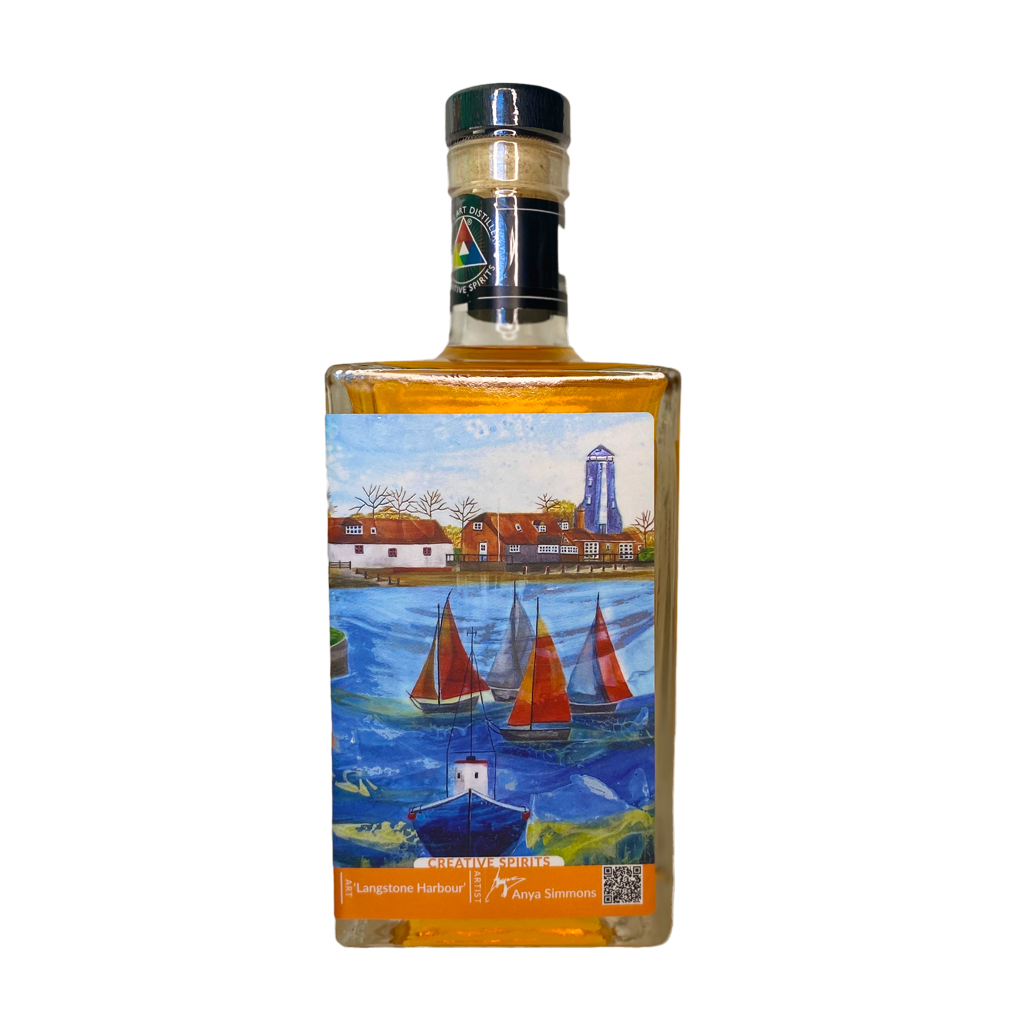 Art on these uniquely numbered collectable bottles is a reproduction of an artwork by Warwick artist Anya Simmons. An idyllic painting of the Hampshire coast showing coastal activities called ‘ Langstone Harbour ‘ (depicting western edge of Chichester Harbour).