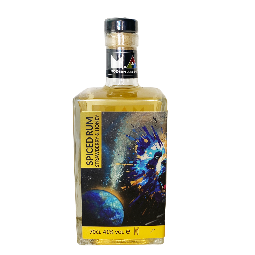 Modern Art Distillery (MAD) Strawberry  & Honey Spiced Rum is a flavoured rum and a best seller. The finest molasses-based spiced rum , blended with tart, ripe, untamed strawberries and softened with wildflower honey – all subtly spiced with cinnamon, pimento and clove to produce a sweet and abundant landscape.