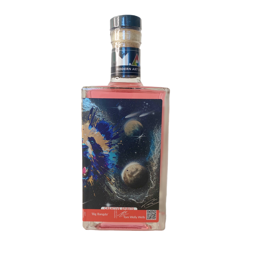 Art on these uniquely numbered collectable bottles is a reproduction of an artwork commissioned by Modern Art Distillery and is the work of self-taught Tik Tok sensation spraypaint artist, Exmouth artist Tom Welly Wells. The artwork is of a spirit animal called ‘ Big Bangda ‘.